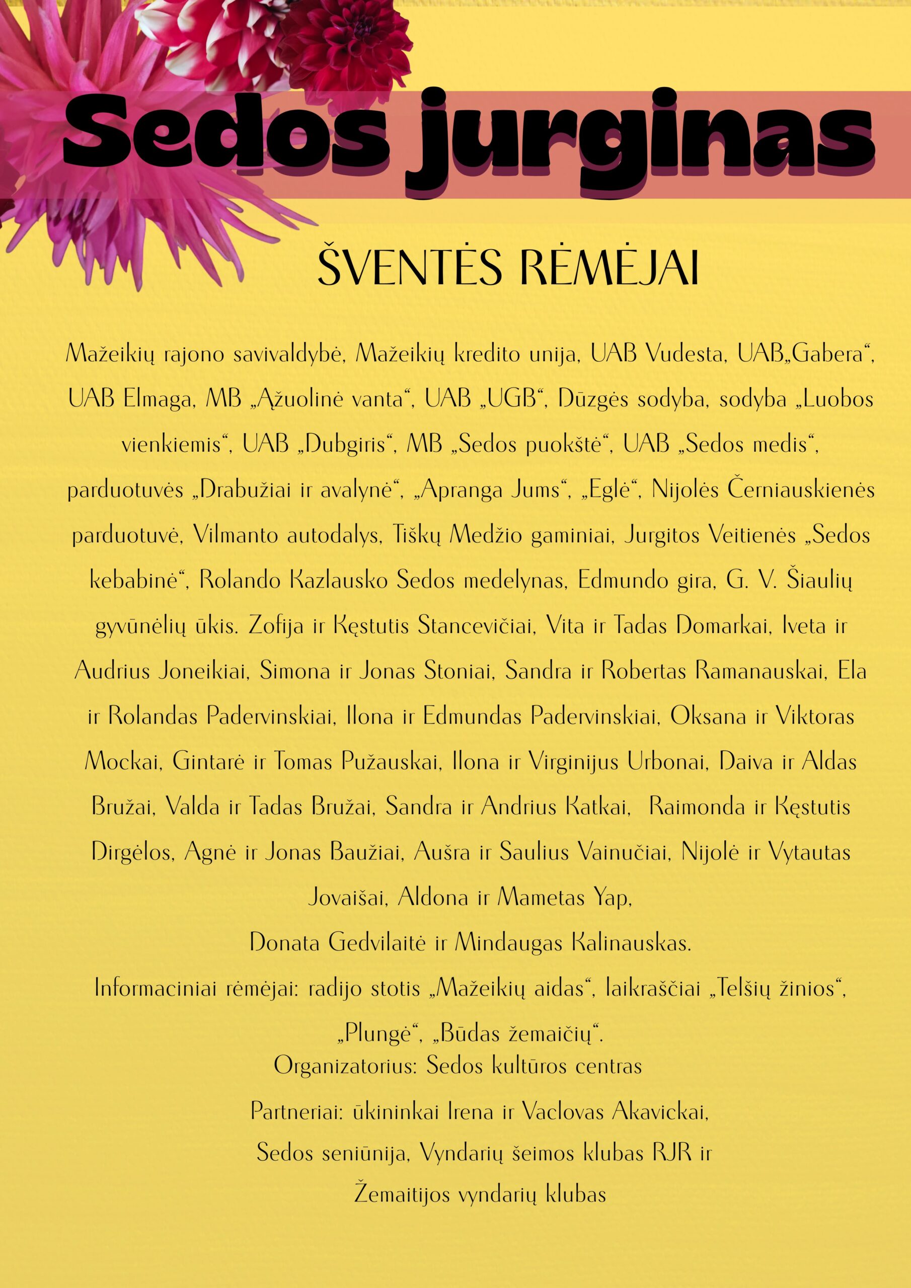 SKELBIMAI Sedos jurginas 2025 seda 2025-09-05 0 Post navigation Previous: „Modo do bruoliokā”Next: Mokslo metų pradžios šventė More Stories SKELBIMAI ŽEMAITIU TEATROS SEDUO seda 2026-01-23 0 SKELBIMAI Kūrybos popietė seda 2026-01-23 0 SKELBIMAI Ruošiamės šventėms seda 2025-12-04 0 Parašykite komentarą Atšaukti atsakymąTik prisijungę vartotojai gali komentuoti.